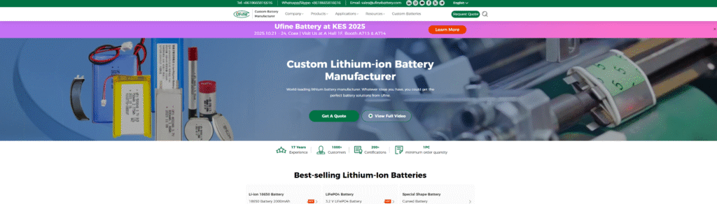 Based in Shenzhen, Ufine Battery focuses on custom Li-ion and LiFePO₄ battery packs for portable power, telecom, and medical devices.